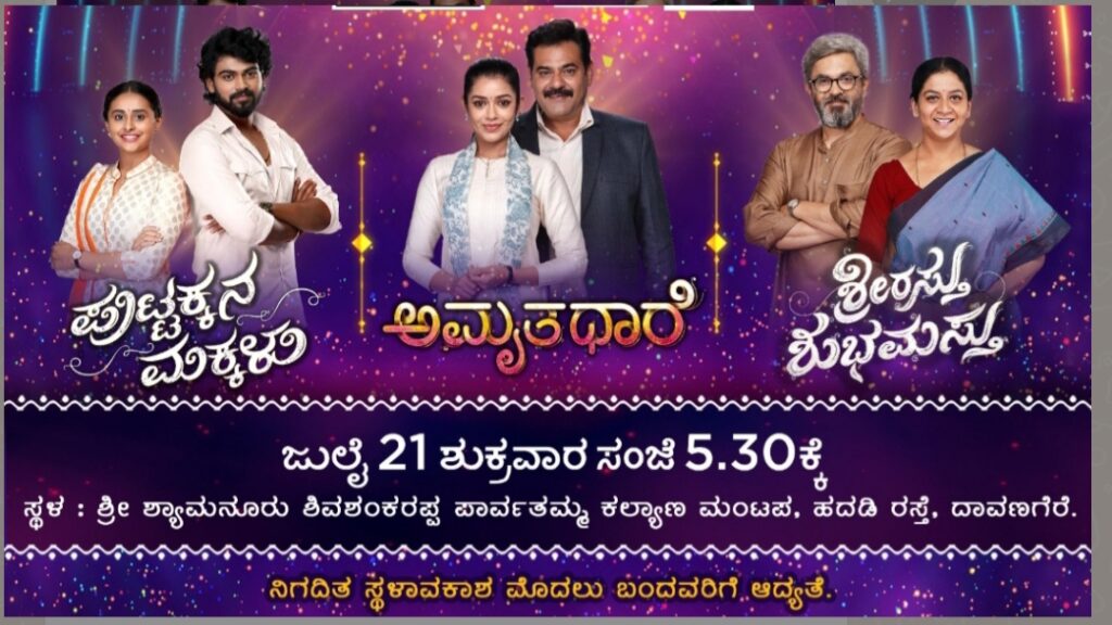 ವೀಕ್ಷಕರಿದ್ದಲ್ಲಿಗೆ ವಾಹಿನಿ ಬರೋದು ಹೊಸತೇನಲ್ಲ, ಆದ್ರೆ ಯಾವಾಗಲು ಹೊಸತನಕ್ಕೆ ಹಾತೊರೆಯುತ್ತ ತನ್ನ ವೀಕ್ಷಕರಿಗೆ ಹೊಸ ಬಗೆಯ ಕಾರ್ಯಕ್ರಮಗಳ ಮೂಲಕ ಮನೋರಂಜನೆ ನೀಡುತ್ತ ಬಂದಿರುವ ಜೀ ಕನ್ನಡ ವಾಹಿನಿಯು ಸದಾ ವೀಕ್ಷಕರ ನಾಡಿಮಿಡಿತವನ್ನ ಅರಿತು ಕಾರ್ಯಕ್ರಮವನ್ನ ರೂಪಿಸುತ್ತಾ ಬರುತ್ತಿದೆ.ಇದೀಗ ಆ ನಿಟ್ಟಿನಲ್ಲಿ ತನ್ನ ಜನಪ್ರಿಯ ಧಾರಾವಾಹಿಗಳಾದ ಶ್ರೀರಸ್ತು ಶುಭಮಸ್ತು,ಅಮೃತಧಾರೆ ಮತ್ತು ಪುಟ್ಟಕ್ಕನ ಮಕ್ಕಳು ಸೀರಿಯಲ್ ತಂಡದ ಕಲಾವಿದರ ಜೊತೆ ಬೆಣ್ಣೆನಗರಿ ದಾವಣಗೆರೆಗೆ ಬರಲು ಸಿದ್ದವಾಗಿದೆ.