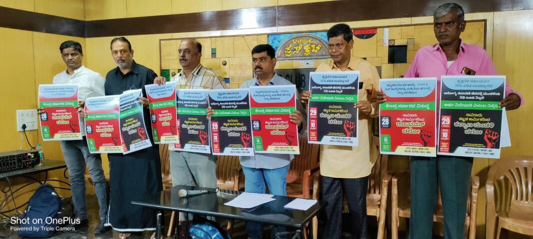ಬೆಂಗಳೂರು:ಶೈಕ್ಷಣಿಕ ಸಹಾಯಧನ ಕಡಿತ ವಾಪಸ್ಸಾಗಬೇಕು ಹಾಗೂ ವೈದ್ಯಕೀಯ ತಪಾಸಣೆ ನೆಪದಲ್ಲಿ ಖಾಸಗಿ ಆಸ್ಪತ್ರೆಗಳಿಗೆ ಕಲ್ಯಾಣ ಮಂಡಳಿ ನಿಧಿ ವರ್ಗಾವಣೆ ನಿಲ್ಲಿಸಲು ಒತ್ತಾಯಿಸಿ ನವೆಂಬರ್ 28-29 ಬೆಂಗಳೂರಿನಲ್ಲಿ ಕಾರ್ಮಿಕರ ಪ್ರತಿಭಟನೆ ನಡೆಯುವುದು.