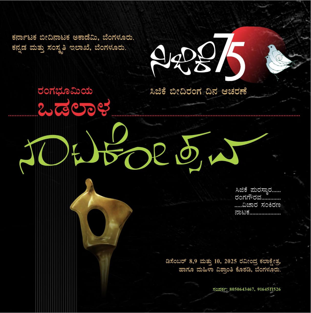 ಬೆಂಗಳೂರು, ಡಿ.6: ಕರ್ನಾಟಕ ಬೀದಿ ನಾಟಕ ಅಕಾಡೆಮಿ, ಕನ್ನಡ ಮತ್ತು ಸಂಸ್ಕೃತಿ ಇಲಾಖೆ ವತಿಯಿಂದ ಸಿಜಿಕೆ ಬೀದಿರಂಗ ದಿನಾಚರಣೆಯ ಪ್ರಯುಕ್ತ ಡಿ.8, 9, ಮತ್ತು 10 ರಂದು ರಂಗಭೂಮಿ ಒಡಲಾಳ ನಾಟಕೋತ್ಸವವನ್ನು ನಗರದ ರವೀಂದ್ರ ಕಲಾಕ್ಷೇತ್ರ ಹಾಗೂ ಮಹಿಳಾ ವಿಶ್ರಾಂತಿ ಕೊಠಡಿಯಲ್ಲಿ ಹಮ್ಮಿಕೊಳ್ಳಲಾಗಿದೆ ಎಂದು ಕರ್ನಾಟಕ ಬೀದಿನಾಟಕ ಅಕಾಡೆಮಿ ಕಾರ್ಯದರ್ಶಿ ಯತೀಶ್ ಸೊಂಡೆಕೊಪ್ಪ ತಿಳಿಸಿದ್ದಾರೆ.